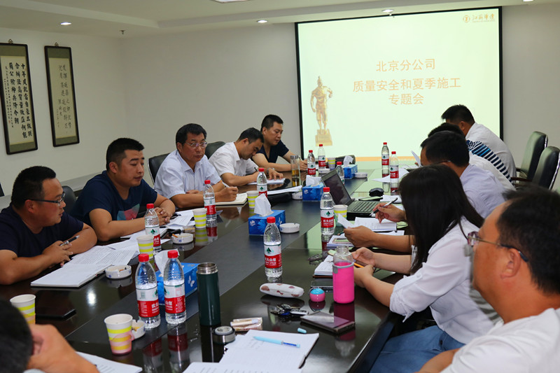 鑒于當前持續高溫、雨水頻繁的季節性施工特點和施工質量安全狀況,7月22日下午,在北京公司會議室召開了北京、河北、天津地區工程質量安全和夏季施工專題會議。相關工程處生產主任、技術主任、技術科長、安全科長、在施工程項目經理、技術質量處和施工安全設備處全體參會。
