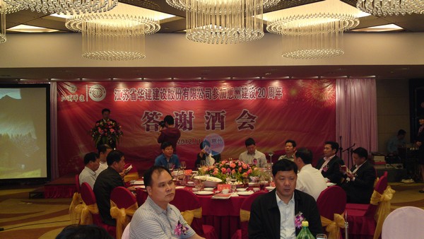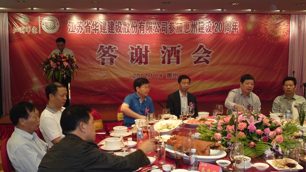公司在惠隆重召開參加惠州建設20周年慶典暨答謝酒會 時間:2012-11-06 4439 公司在惠隆重召開 參加惠州建設20周年慶典暨答謝酒會 11月4日,公司在惠州凱賓斯基酒店王子飯店隆重召開參加惠州建設20周年慶典暨答謝酒會,公司副董事長、總經理宗有農主持酒會并作開場致辭。惠州市有關政府部門、部分合作方企業的負責人,華建聯盟成員單位負責人,公司董事、監事和高管等130余人出席慶典。惠州公司總經理華恒榮介紹了公司參加惠州建設20年的有關情況。惠州市工商聯主席、公司戰略合作伙伴恒宇實業集團公司董事長楊滿芳代表合作方發言,惠州市住房和城鄉規劃建設局副局長陳訓政代表政府主管部門致辭,分別對江蘇華建進駐惠州施工、參加惠州建設20周年表示祝賀。公司董事長陸金龍代表公司總部對惠州市有關政府部門、相關合作方和社會各界人士給予公司的關心和支持表示誠摯的感謝,并表達了進一步加大支持力度、加強戰略合作、加快科學發展的意愿。 (峰年 文/圖)