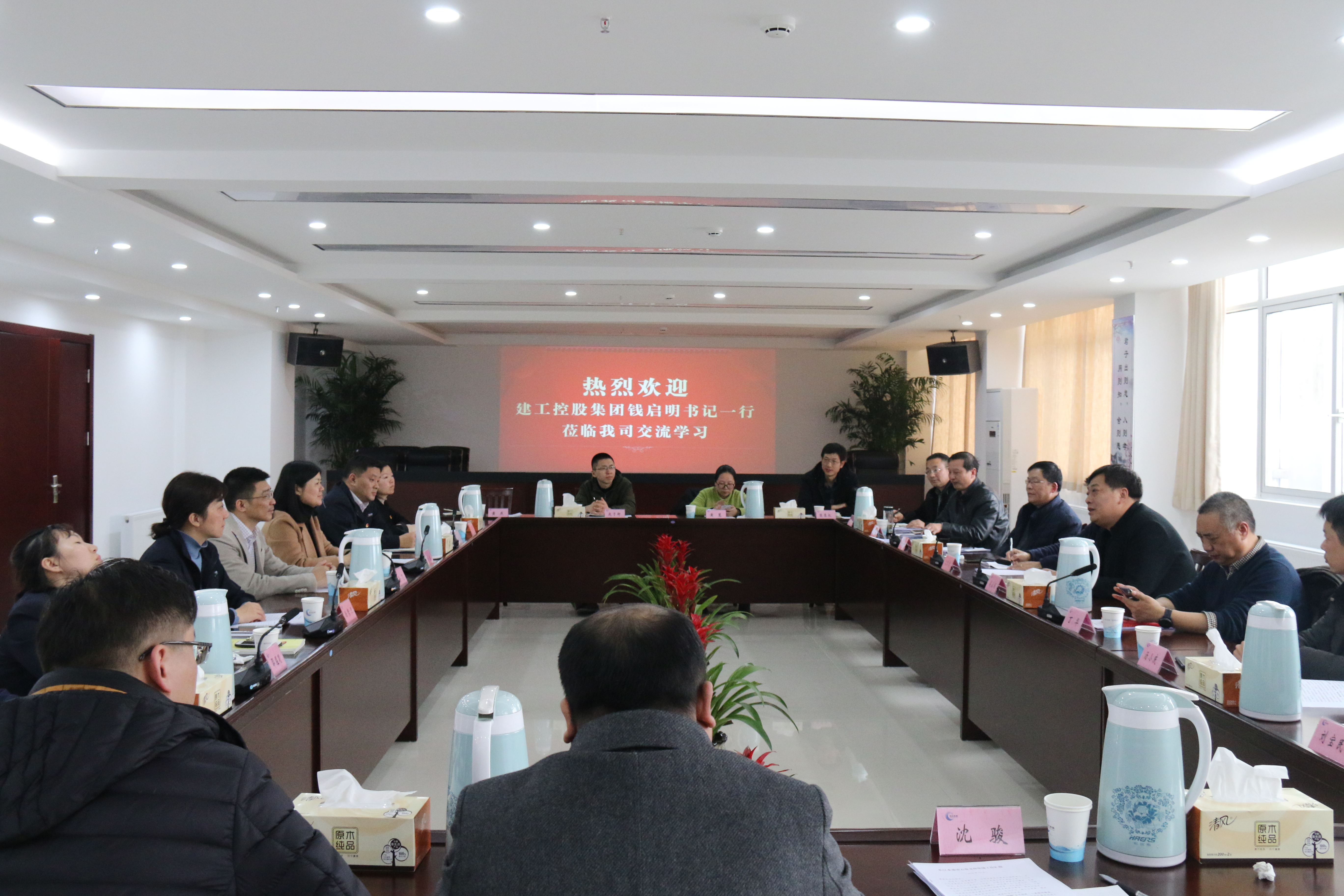 3月13日下午,在建工控股公司黨委副書記、紀委書記錢啟明帶領下,揚州分公司丁華書記、張文和劉磊與其他在揚機構基層黨組織支部書記和黨務骨干一同赴江蘇長江水務公司開展黨建工作學習交流活動,城控集團黨委副書記、紀委書記徐飛等領導陪同參加。