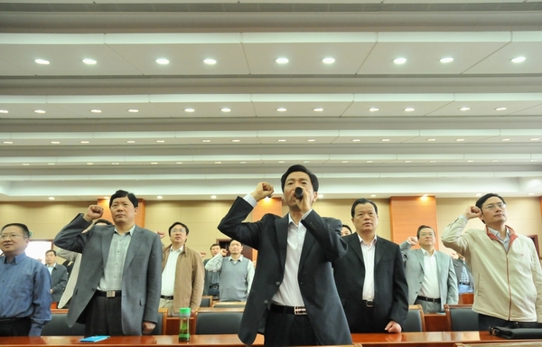 揚州建工控股系統組織黨員干部到揚州市警示教育基地參觀接受教育 時間:2011-05-27 5103 5月27日上午,建工控股公司機關、華建總部黨員干部和揚建、揚安、華宏、中專校等單位領導班子成員及黨務、紀檢、財務、行政等部門中層負責人共80多人,到揚州市警示教育基地參觀接受教育,大家觀看了預防腐敗警示教育宣傳圖片、電視專題片和違法犯罪人員現身說法錄像。建控公司黨委書記、董事長陸金龍在參觀結束前作了誡勉講話,指出這次建控系統組織黨員干部開展廉潔自律警示教育活動,是加強干部能力作風建設的一項重要內容。一系列反面案例帶來的教訓和思考,令大家深受觸動。見不賢而內自省。建控系統廣大黨員干部要從確立正確的角色定位、樹立合理的人生追求、建立完善的制度保障、打造健康的從業環境四個方面入手,進一步加強廉政教育、樹立自律意識、保持清廉本色,從而提高干事業、謀發展的能力和水平,為創建“三個揚州”、建設和諧社會作出應有貢獻。最后,陸金龍同志帶領大家集體進行了莊嚴的廉政承諾宣誓。