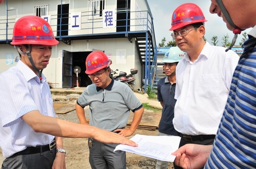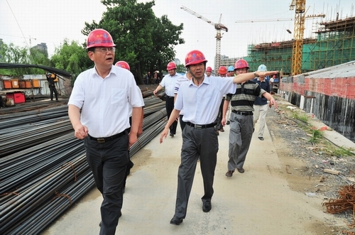 8月12日下午,揚(yáng)州市政府副市長陳揚(yáng)、市建設(shè)局局長楊正福一行前往江蘇華建代建的揚(yáng)州建設(shè)大廈暨規(guī)劃展覽館、市民中心項(xiàng)目工地現(xiàn)場視察。揚(yáng)州建工控股公司、江蘇華建董事長陸金龍陪同視察,并將工程施工進(jìn)展情況向陳副市長作了簡要匯報(bào)。陳副市長對建設(shè)大廈總體施工進(jìn)展表示滿意,并提出希望所有參建單位精心組織,科學(xué)管理,確保這一政府重點(diǎn)工程建設(shè)順利推進(jìn)。公司領(lǐng)導(dǎo)程杰等一起陪同視察。