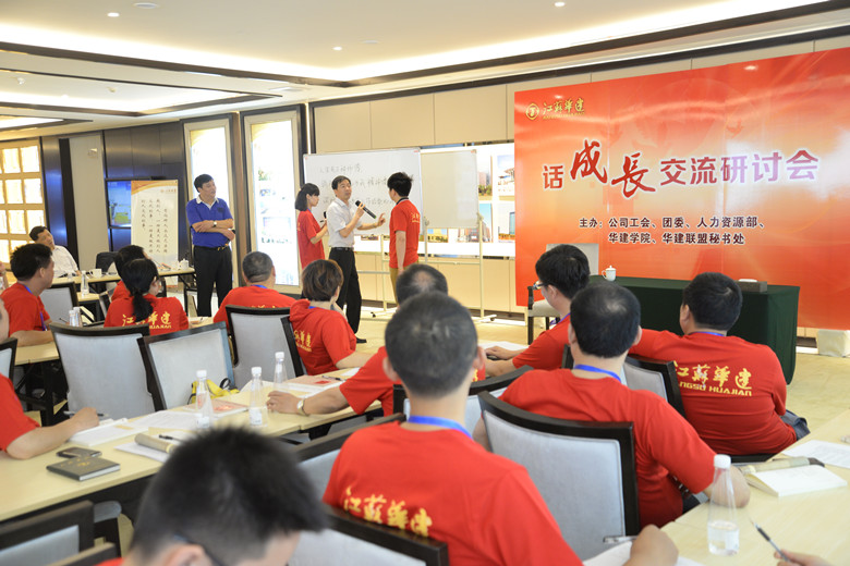 與會人員首先參觀了企業(yè)展示中心,合唱《華建之歌》,共讀《我要用全身心的愛擁抱今天》,身心得到了綻放。隨后,與會人員根據不同層次與類別分成了四大組,6名青年員工代表上臺分享了自己的成長經歷,提出了成長過程中的困惑和未來職涯發(fā)展目標。
