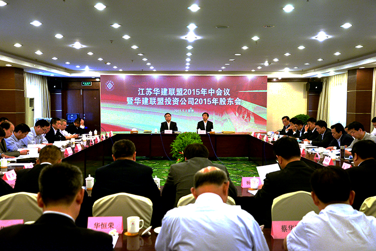 5月4日,在前一天華建聯盟投資公司董事會監事會召開會議并通過了有關事項以后,華建聯盟在揚州怡園飯店召開2015年中會議暨聯盟投資公司股東會,聯盟成員單位負責人(聯盟投資公司股東單位代表)、投資公司董事和監事、高管等參加會議,華建公司高管、各區域公司及分支機構和總部部門負責人等列席會議,宗有農主持會議。
