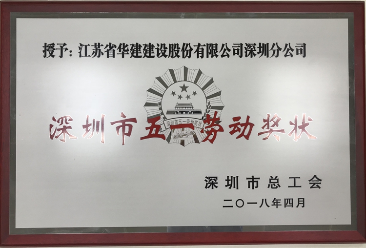 江蘇華建深圳分公司被授予深圳市五一勞動獎狀 時間:2018-04-27 3468 4月26日下午,在“五一”國際勞動節來臨之際,深圳市隆重召開慶祝“五一”國際勞動節大會,表彰一批在推動深圳經濟特區各項事業發展中作出重大貢獻的先進集體和先進個人,廣東省委常委、深圳市委書記王偉中、市人大常委會主任丘海、市政協主席戴北方出席大會并為獲獎者代表頒獎。會上,江蘇華建深圳分公司被授予2018年深圳市五一勞動獎狀(全市僅25家獲此殊榮),也是唯一一家建筑施工企業,這是對江蘇華建勞動創造輝煌的充分肯定,是對公司奮斗贏得榮光的高度褒獎。