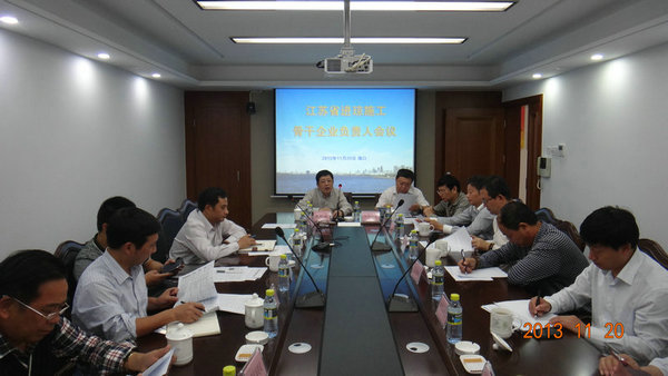 11月20日下午,由江蘇省住房和城鄉建設廳駐南方辦事處和海南省江蘇商會駐瓊建工專委會聯合主辦的2013年度“江蘇省進瓊施工骨干企業負責人會議”在江蘇華建海南分公司會議室召開,會議由江蘇省住建廳駐南方辦事處朱躍斌主任主持。