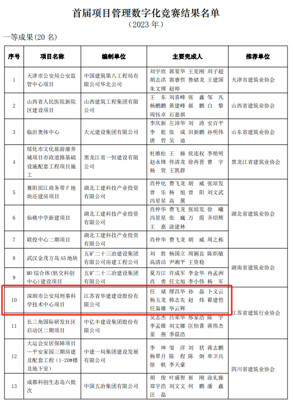 近日,中國建筑業協會舉辦“2023年(首屆)項目管理數字化競賽”,對2023年度各地區、行...