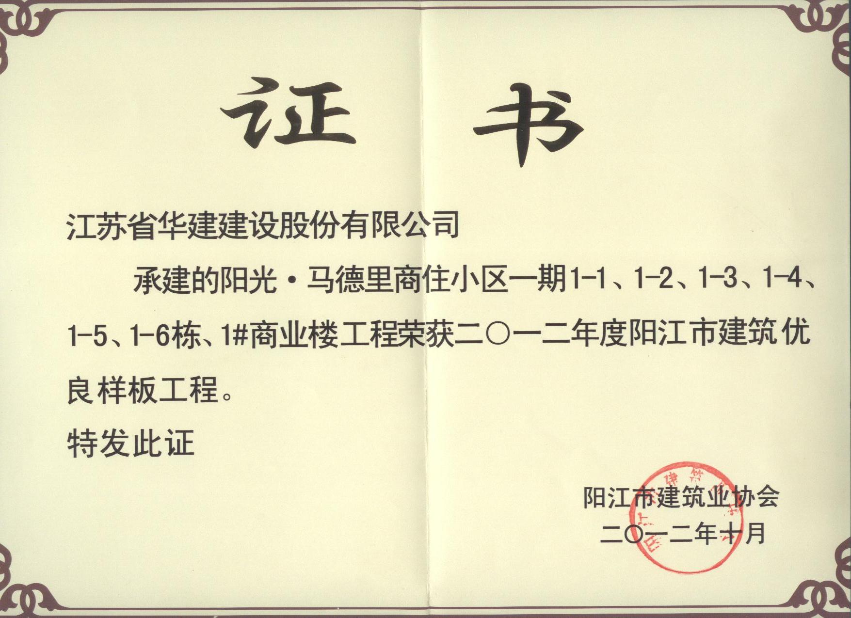 2012陽江陽光馬德里項目陽江市優良樣板工程