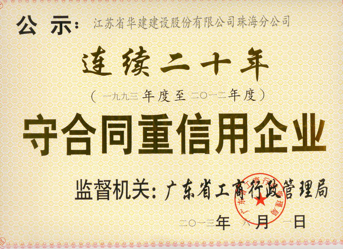 2013廣東省連續二十年守合同重信用企業
