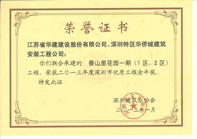 該工程于2009年3月10日開工, 2010年4月18日同時通過竣工驗收。工程先后榮獲2010年度廣東省建筑業新技術應用示范工程、2011年度深圳市優質結構工程、2013年度深圳市優、“金牛獎”。2013年12月,該工程被國家工程建設質量獎審定委員會評為國家優質工程。