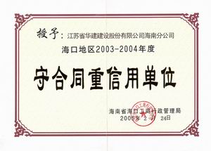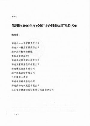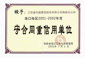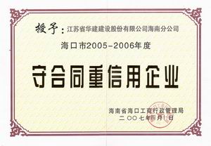 企業誠信榮譽 時間:2019-01-01 8718 2001-2002年度海口市守合同重信用 2003-2004年度海口市守合同重信用 2005-2006年度海口市守合同重信用 2002-2004年度海南省守合同重信用 2006年度全國守合同重信用1 2006年度全國守合同重信用2 2006年度全國守合同重信用3 2006年度全國守合同重信用4 2012年度海南省守合同重信用