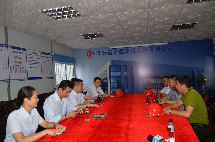 在項目現(xiàn)場會議室,雙方就項目推進工作進行了座談。項目負責人袁紅如介紹了珠海航空標準件倉儲基地工程的施工進展情況。繆國樞總經(jīng)理表示江蘇華建會以特級企業(yè)的標準,保質(zhì)保量地完成施工任務,為中航在珠海打造一項精品工程,從而為雙方的進一步合作創(chuàng)造一個良好的開端。黃勇峰總經(jīng)理對項目的施工進展和現(xiàn)場管理給予了高度評價,期待與江蘇華建在珠海城市建設中進一步攜手合作、共同發(fā)展。