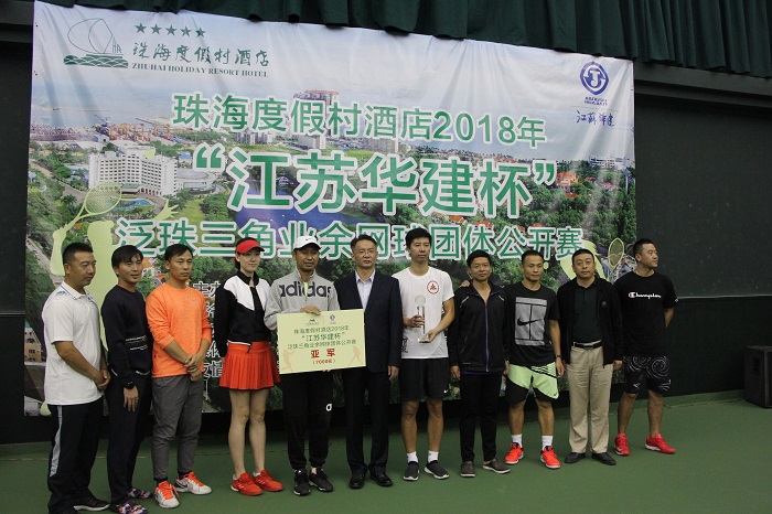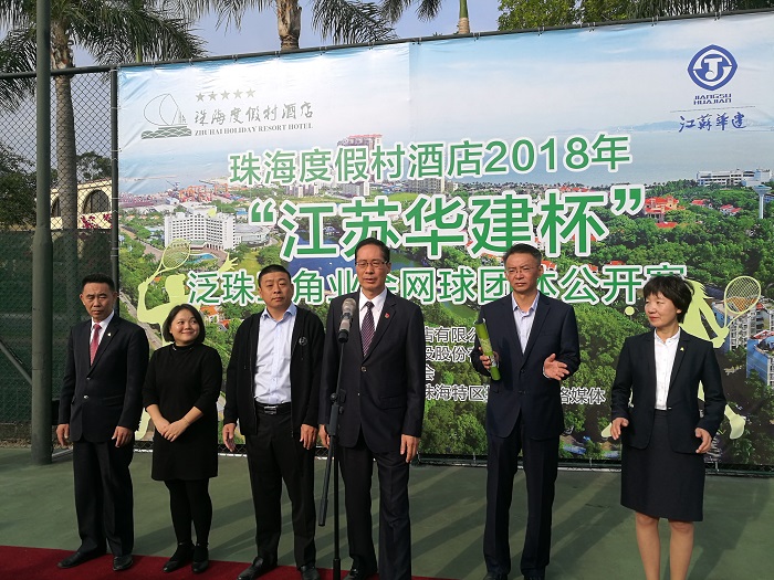24-25日,2018年“江蘇華建杯”泛珠三角業余網球公開賽在珠海度假村網球場開賽,來自香港、澳門、廣州、佛山、深圳、珠海、中山、江門、肇慶的16支代表隊近200名男女高手在珠一決高下。他們代表著國內業余網球較高水平。珠海區域公司總經理呂方達和珠海度假村酒店董事長李增利共同為比賽開球,并在比賽結束后為獲獎球隊頒獎。